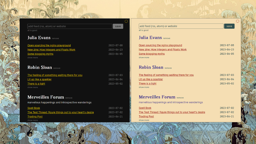 A calm tool (OSX, Linux & Windows; 6MB & Electron-free!) for reading and following RSS feeds. I've been working on this for the past months during spare time and it's my first journey in making something polished enough to sell!