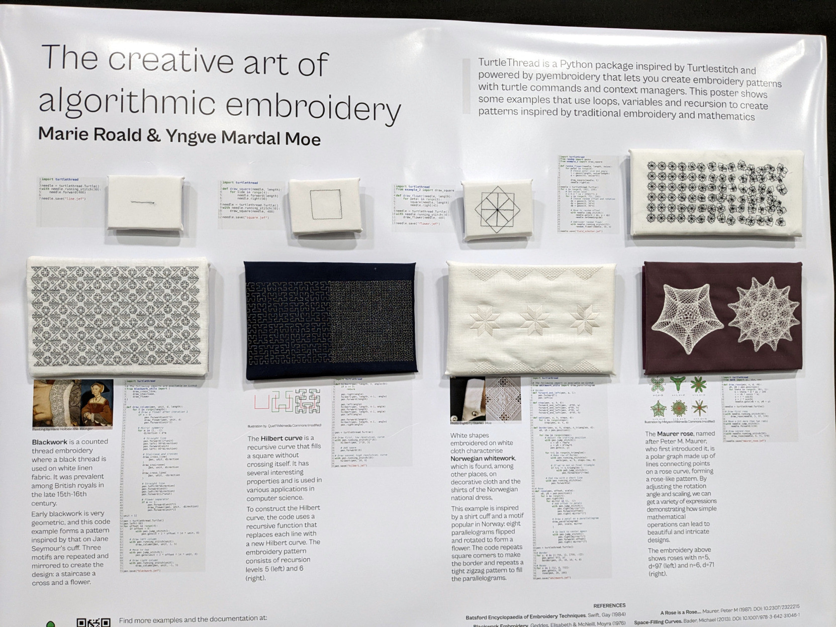 The Creative Art of Algorithmic Embroidery by Marie Roald (https://github.com/marieroald) and Yngve Mardal Moe (https://github.com/yngvem).