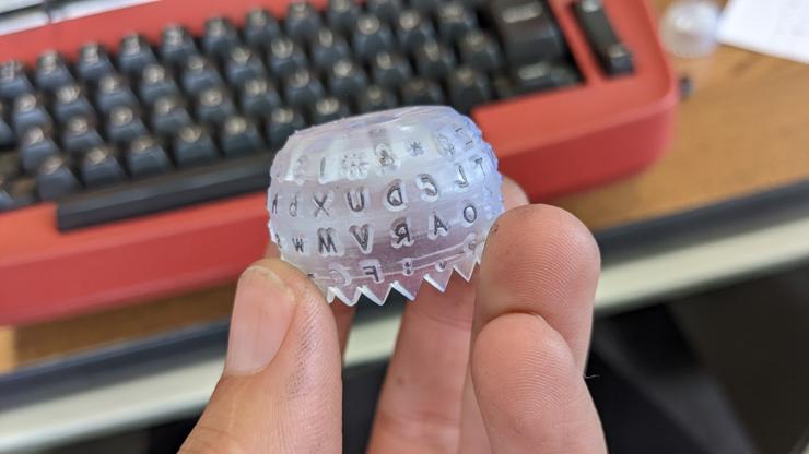 so, @settinger designed and printed a comic sans typewriter ball so we're testing it on my IBM selectric this afternoon and it totally does work!