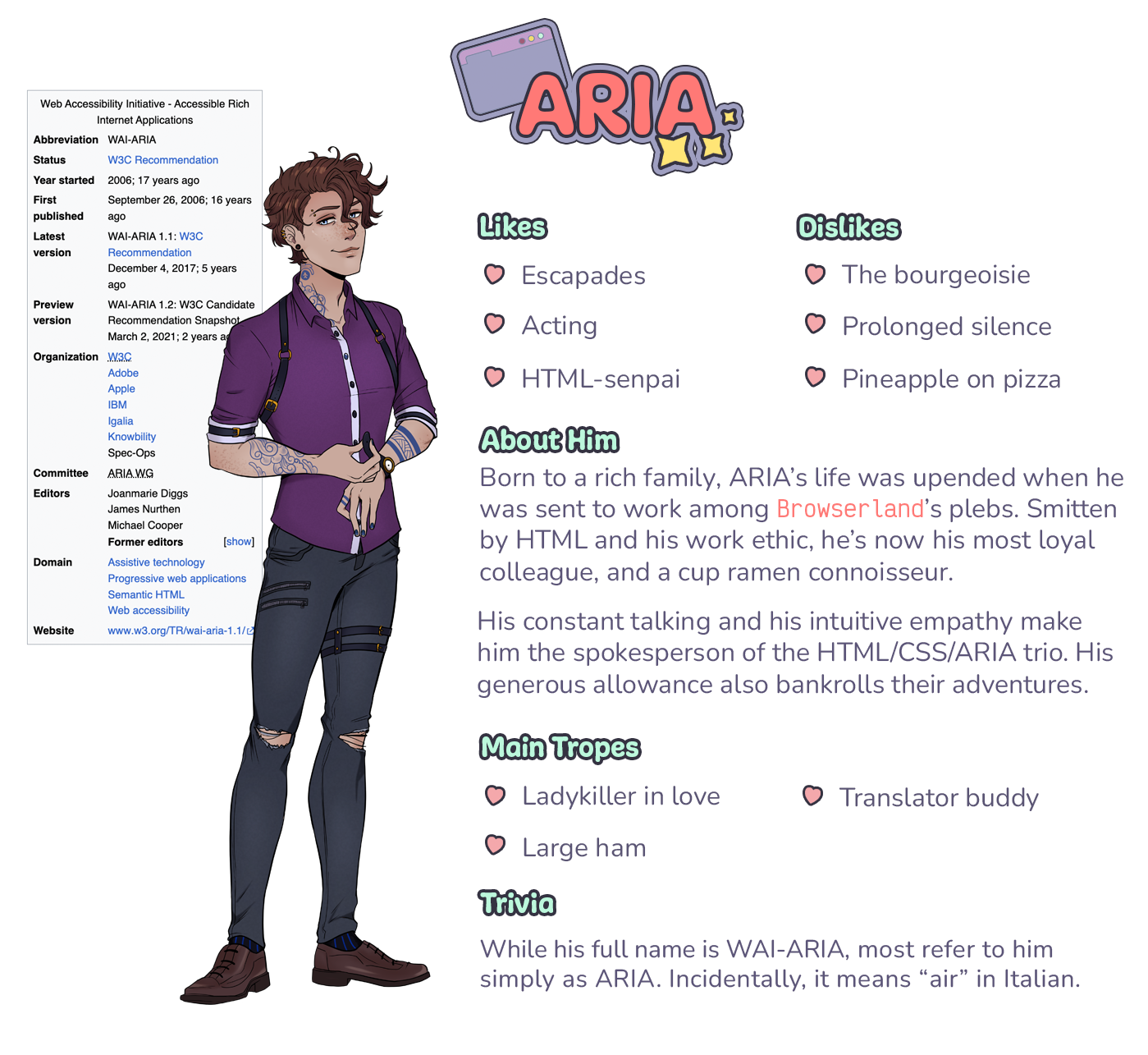You've already met the stars of Issue 0 (Git, Github & Terminal). Today, we're excited to release the FULL character cards for their guest stars + future protagonists of their own issue: HTML, CSS, and ARIA!